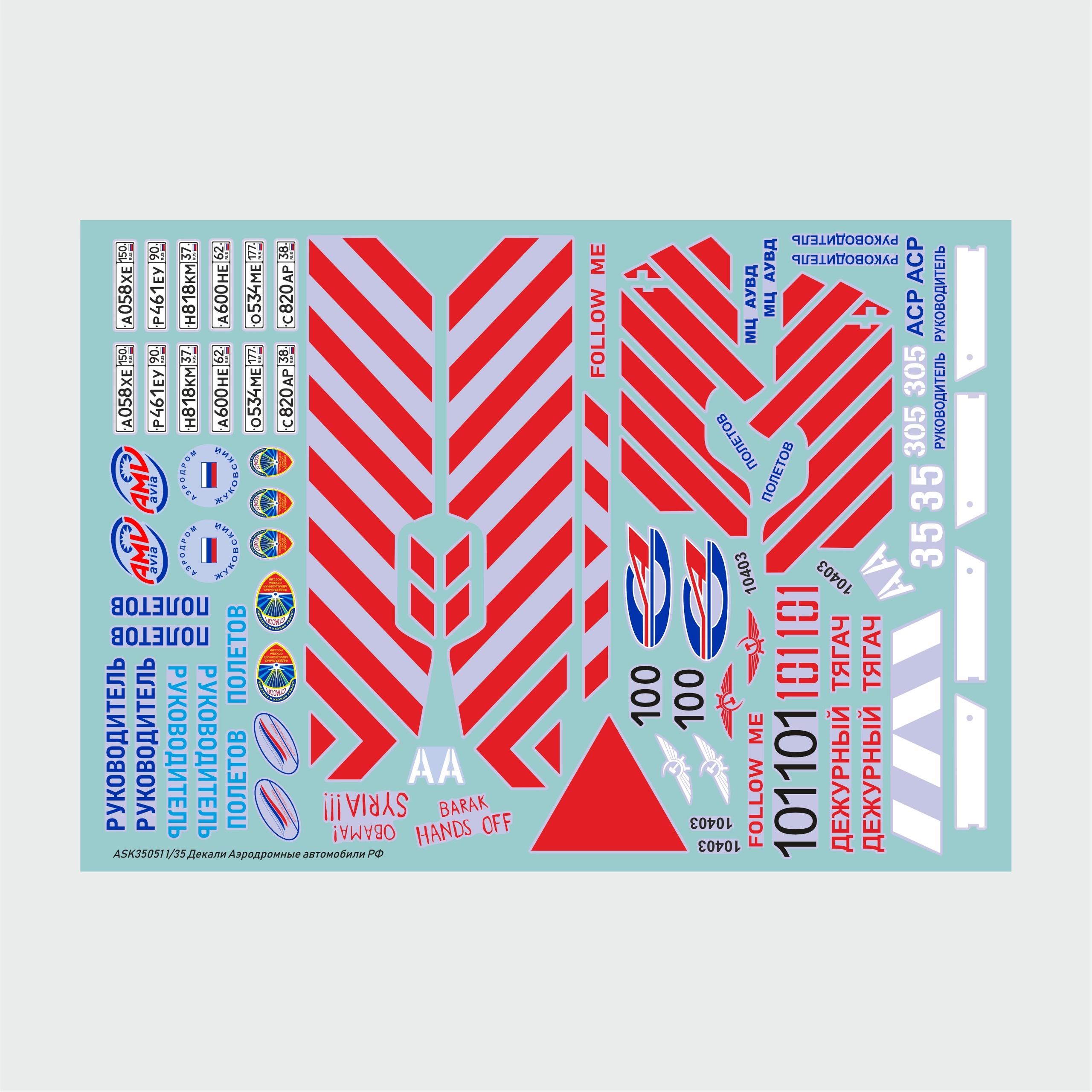 Декаль 1/35 Набор декалей для аэродромных автомобилей РФ (ASK)