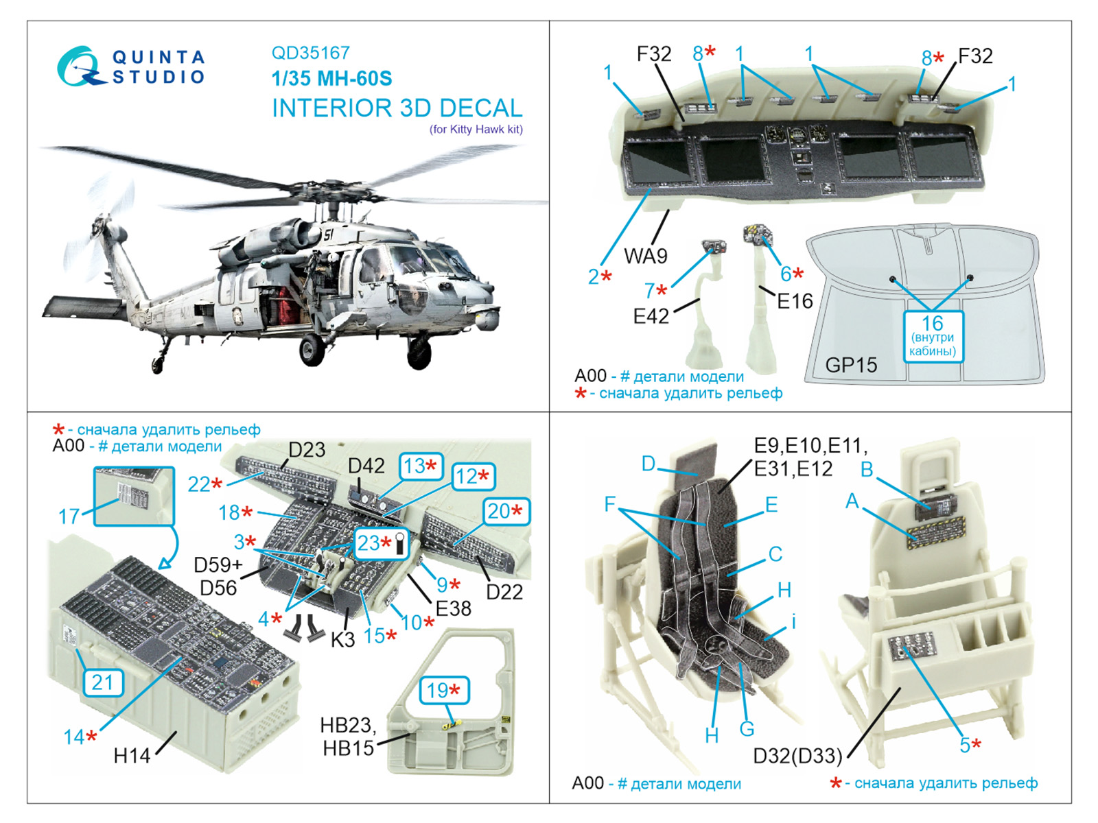 3D Декаль интерьера кабины МН-60S Knighthawk (Kitty Hawk)