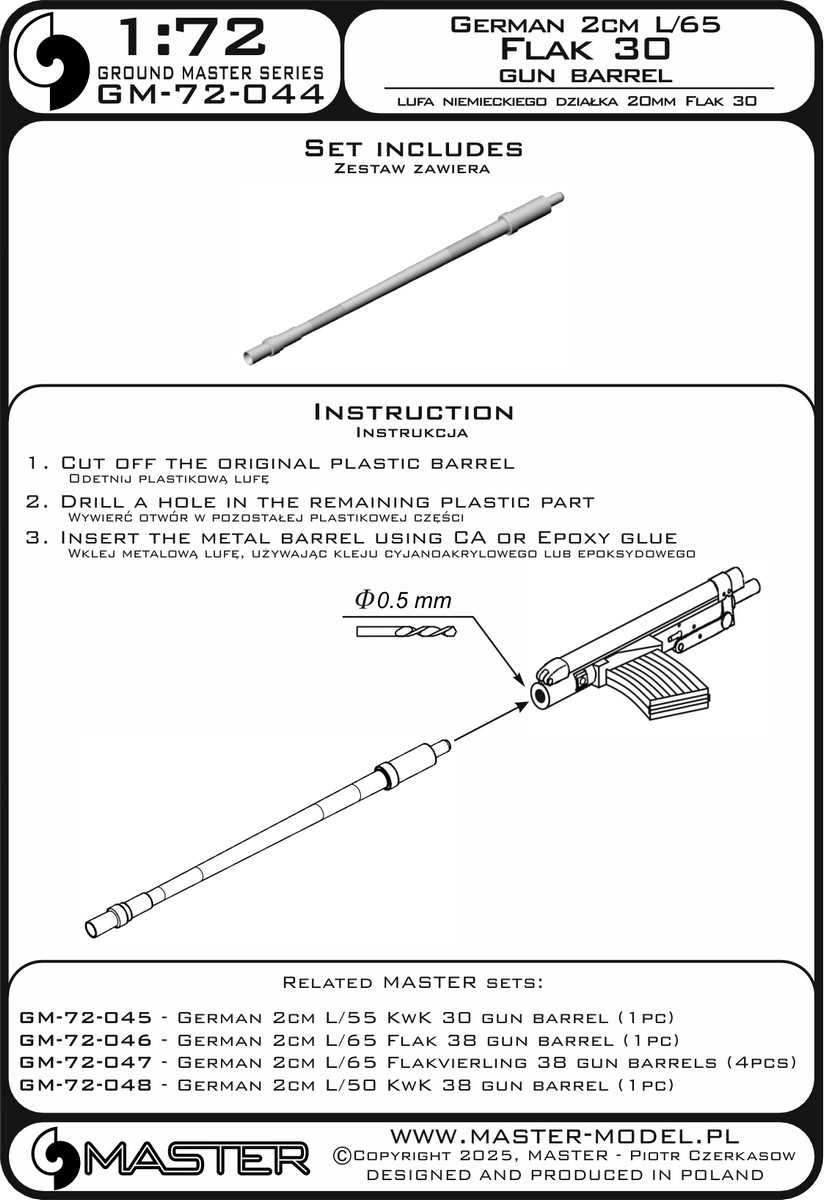 Дополнения из латуни 1/72 German 2cm L/65 Flak 30 gun barrel (1pcs)